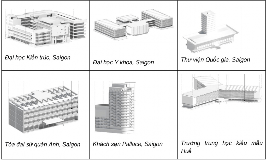 1) Nhận diện đặc điểm của các xu hướng kiến trúc hiện đại miền Nam Việt Nam: phân tích đặc trưng thiết kế của các xu hướng kiến trúc qua yếu tố hình thức, công năng và vật liệu, nhằm làm rõ sự khác biệt và nổi bật của kiến trúc hiện đại trong giai đoạn 1954-1975.