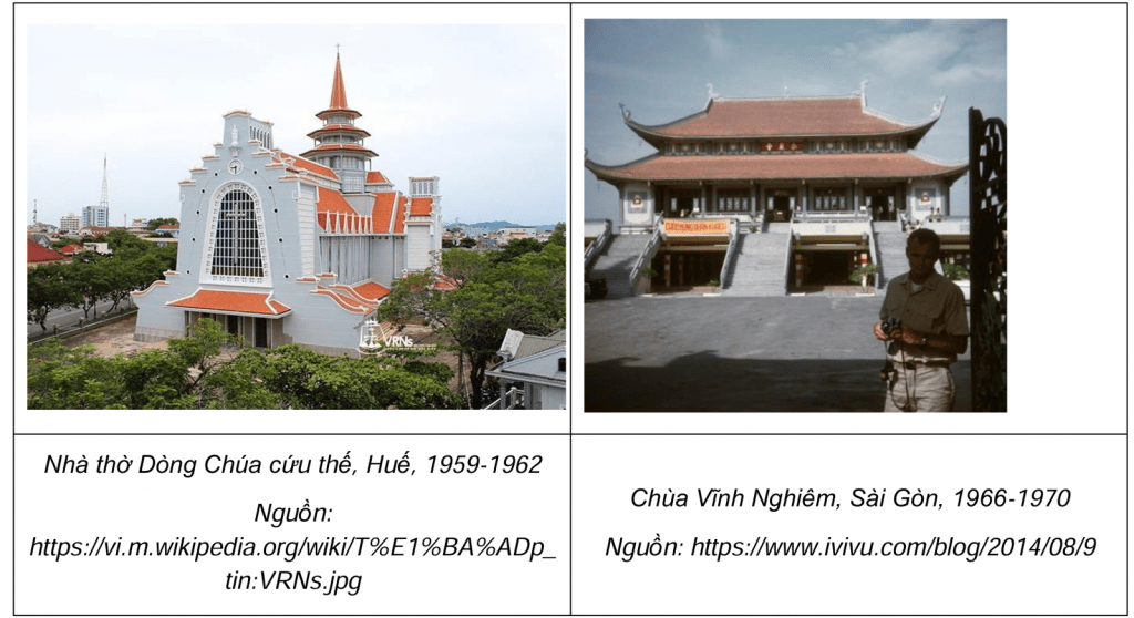 3. Xu hướng Hiện đại – Dân tộc: là sự kết hợp giữa tính hiện đại và các giá trị văn hóa truyền thống, đồng thời thể hiện ý thức về bản sắc dân tộc. Các công trình kiến trúc thuộc xu hướng này thường tận dụng yếu tố truyền thống như mái ngói, khung cột gỗ, hoặc các hoa văn trang trí, được điều chỉnh để phù hợp với ngôn ngữ kiến trúc hiện đại. Bằng cách này, các kiến trúc sư miền Nam đã sáng tạo ra những công trình không chỉ đáp ứng yêu cầu của xã hội hiện đại mà còn mang biểu tượng văn hóa, góp phần gìn giữ bản sắc dân tộc.